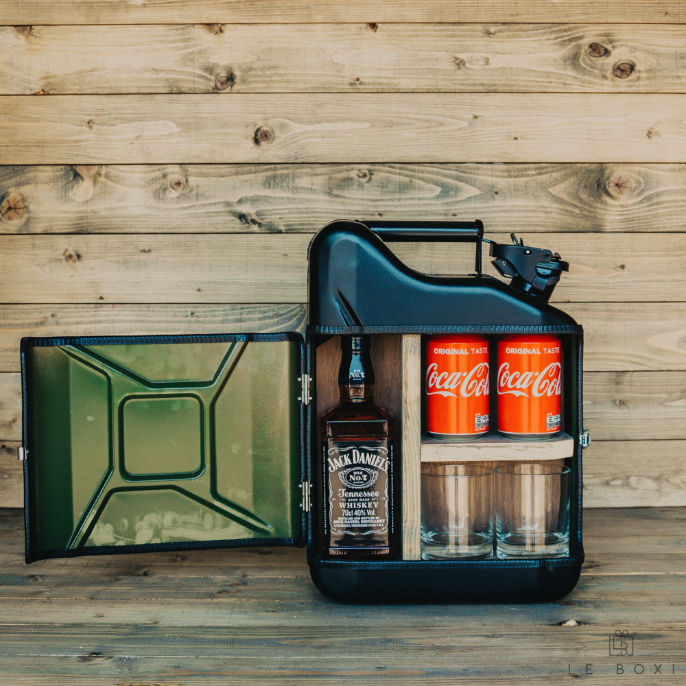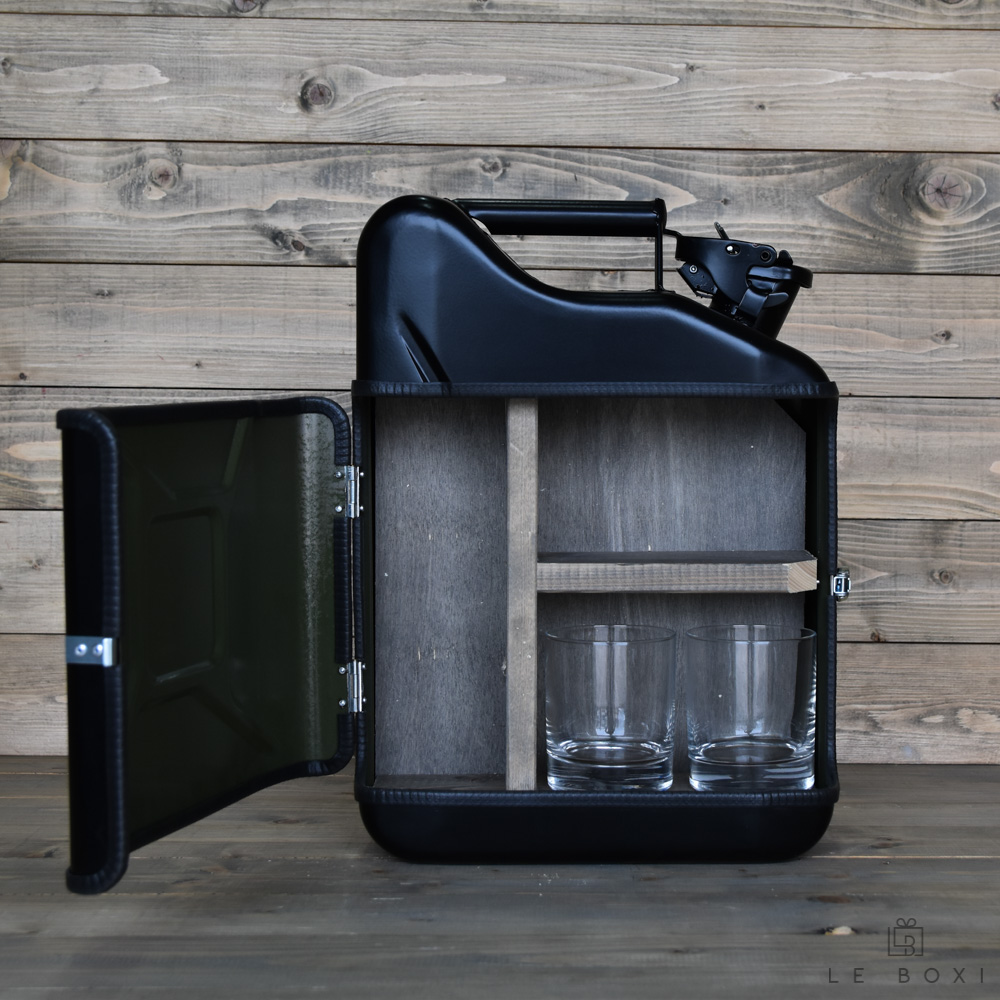 Minibár két üvegpohárral rozsdamentes acélból és fából 10 literes üzemanyagtartály kialakítással. Ideális ajándék partnerének, barátjának, testvérének vagy kollégájának… akinek mindig lehetetlen egyedi ajándékot választani. A minibár kézzel készült Hollandiában, és számos alkalomra alkalmas, például piknikekre, összejövetelekre és partikra. Megjelenésének köszönhetően mindig a figyelem középpontjában lesz, ugyanakkor funkcionalitásának és kapacitásának köszönhetően nélkülözhetetlen társa lesz mindenhol, ahol szórakozás van.