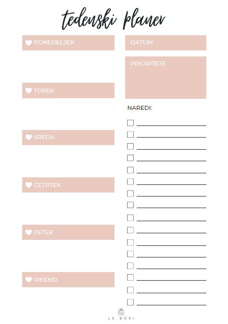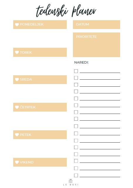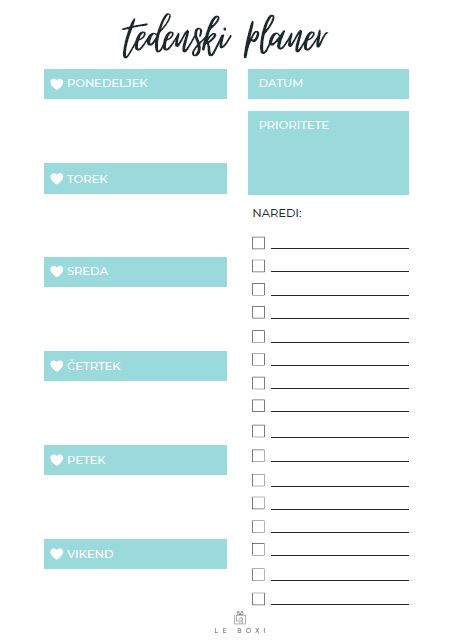 LE BOXI - Brezplačni tedenski planer | Freebie